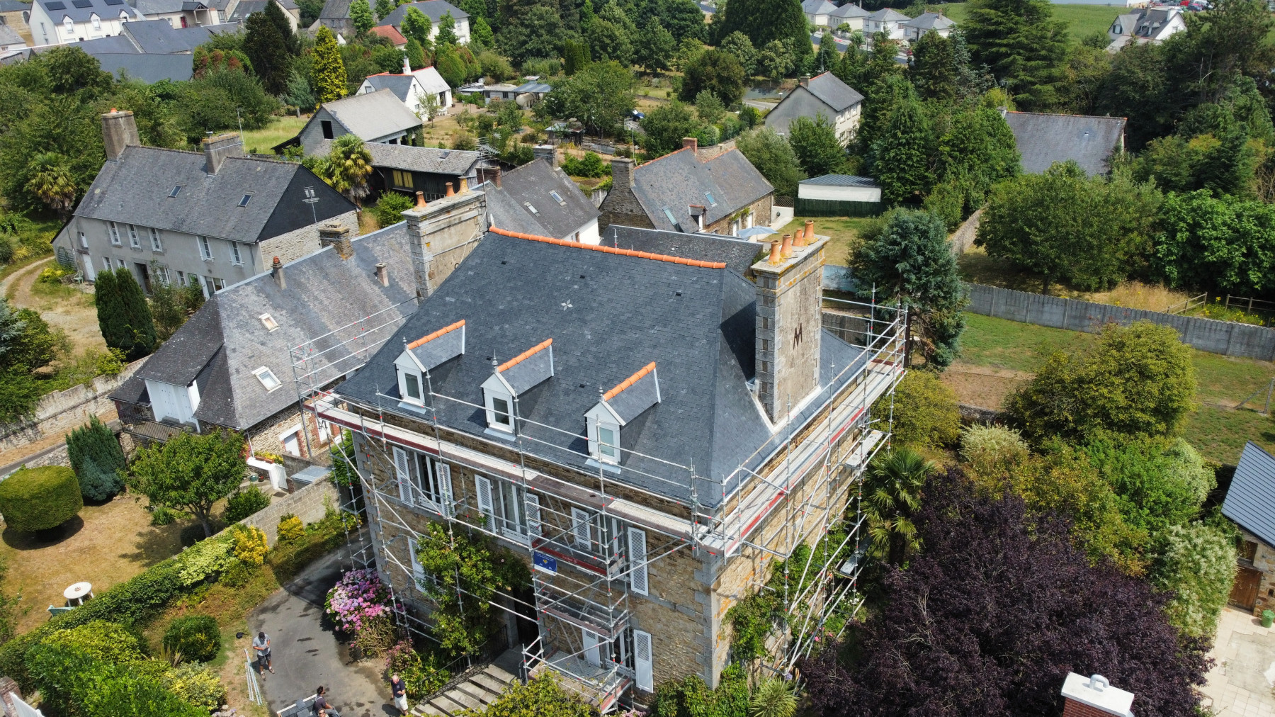 Couverture en ardoises naturelles, avec 6 lucarnes, rénovation des épis d'origine!